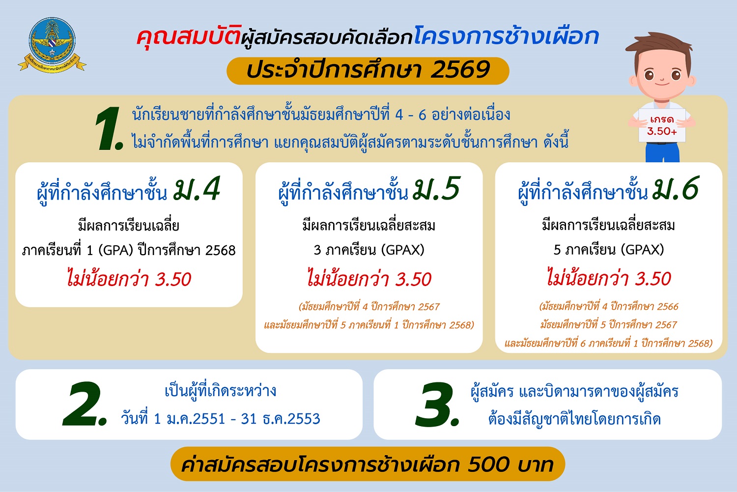 สอบถามปัญหาคุณสมบัติผู้สมัคร และวิธีการกรอกข้อมูล โทร. 02-534-6000 ต่อ 48651, 48656, 48640 และ 06-560 -36002